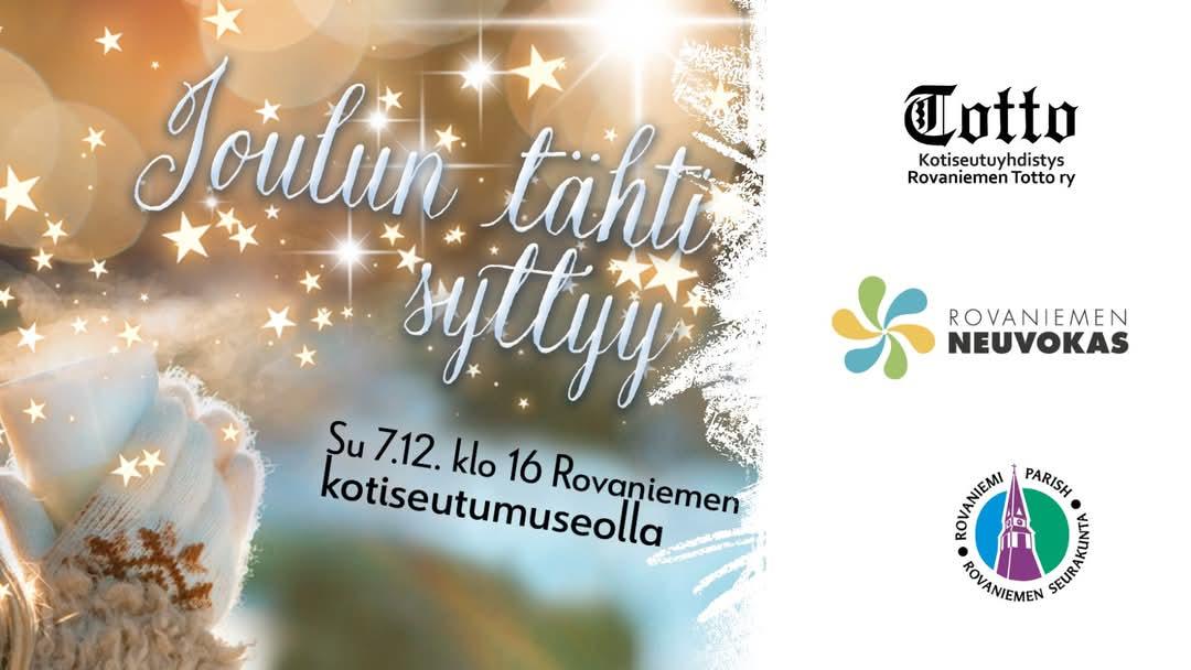 Tervetuloa Rovaniemen kotiseutumuseon pihapiiriin joulunavaukseen, jossa sytytetään tähteen valo. Tapahtuman jälkeen kotiseutumuseon pirtissä on avoinna adventtikahvila, jossa on myynnissä kahvia ja…