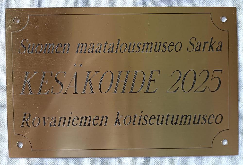 Suomen maatalousmuseo Saran johtaja Lauri Viinikkala tuo tilaisuuteen tervehdyksensä ja luovuttaa Rovaniemen kotiseutumuseolle Vuoden käyntikohde -kilven.